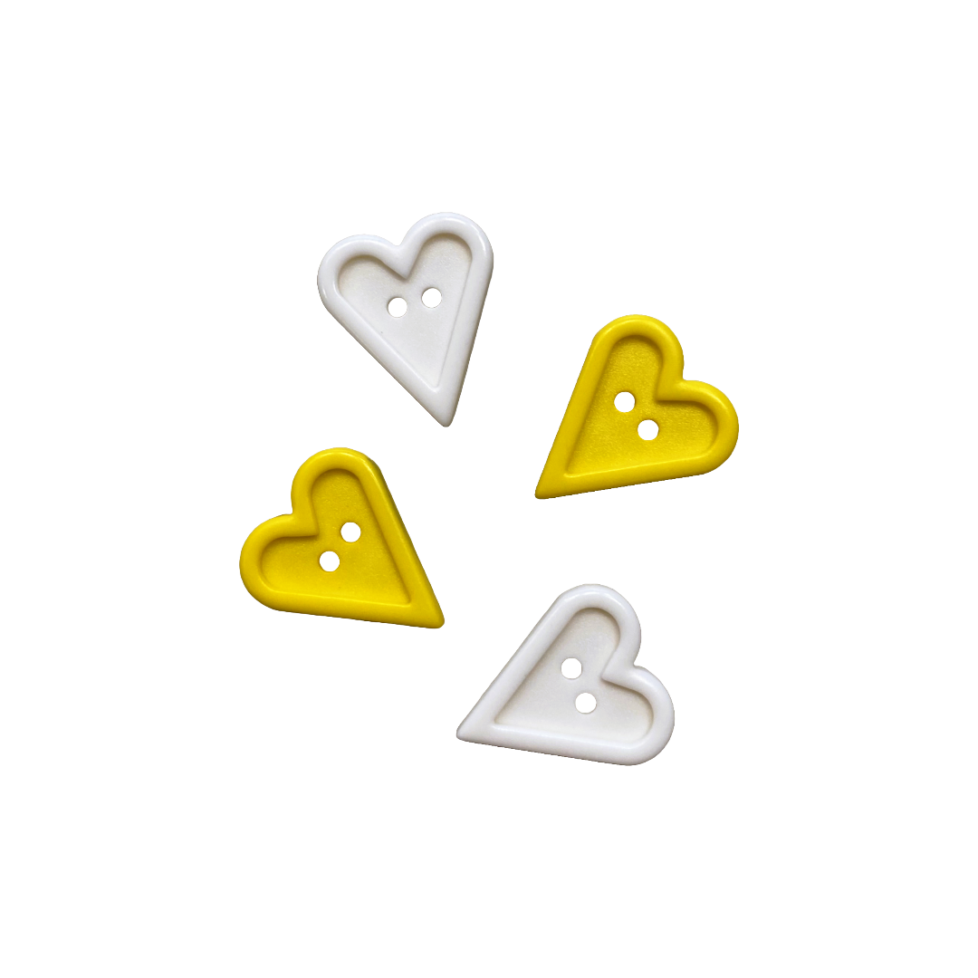 Dekorativni gumbi srček v rumeni in beli barvi – 20 mm