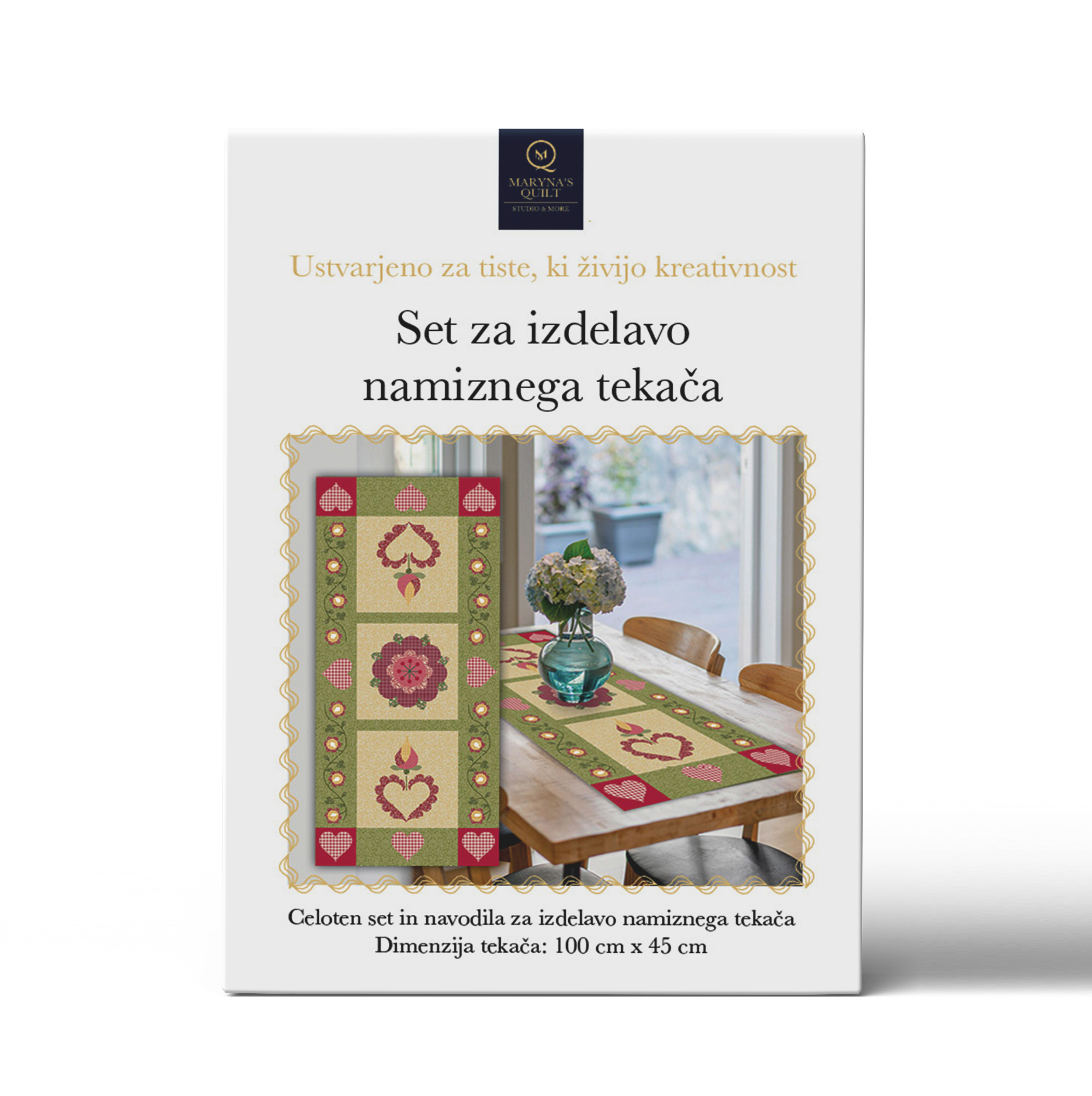 Celotni set za izdelavo namiznega tekača v dimenziji 100 x 45 cm.