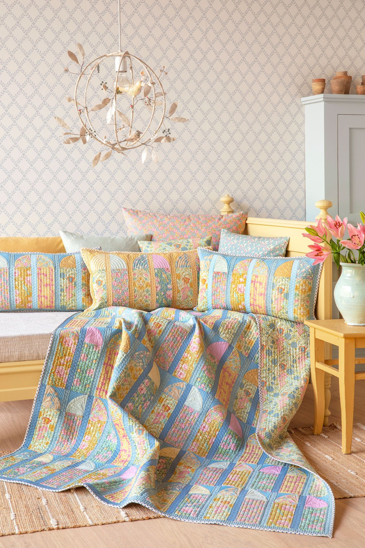 Barvna paleta zbirke je nežna in pomirjujoča, vendar z dovolj svežine, saj vključuje odtenke teal, zelene, nežnih sivih in rumenih tonov, obogatene z barvami, kot so ingver, roza, modra in peščena. Ta kombinacija ustvarja toplo in vabljivo vzdušje, ki je hkrati umirjeno in živahno.