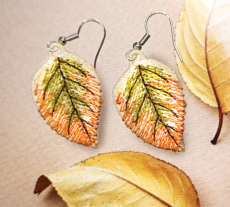 Strojno vezeni uhani so narejeni na vezilnih strojih Bernette in BERNINA iz kakovostnih sukancev Madeira Polyneon.